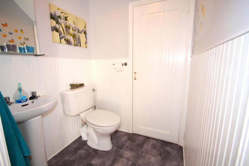 Guest toilet and storage area with lino floor, w.c and w.h.b.