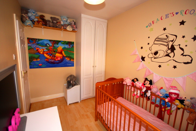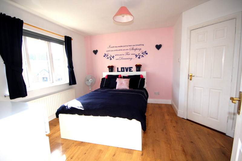 Bright and spacious double bedroom with built in wardrobes and wooden floor.