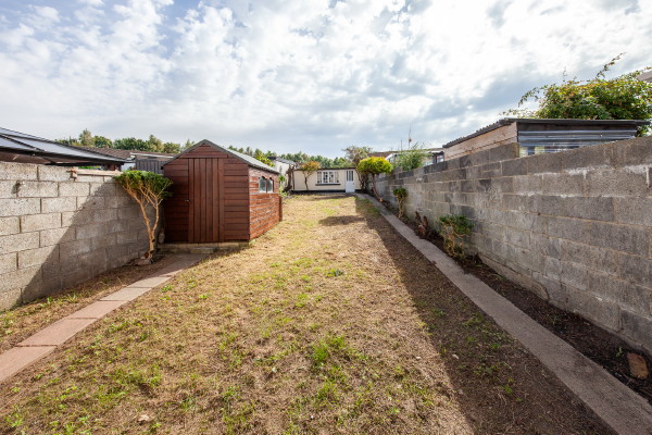 - Outside: Stunning 100 ft back garden with block built shed with power.