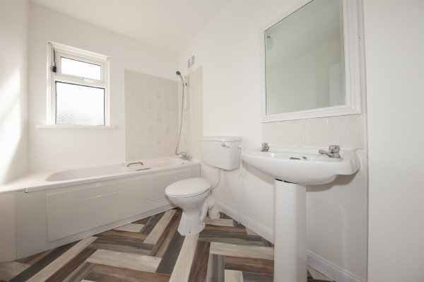 Fully fitted bathroom, bath with shower over, w.c, and w.h.b.