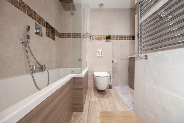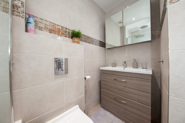 Newly Fitted Bathroom comprising bath with shower over, W.C., and w.h.b.