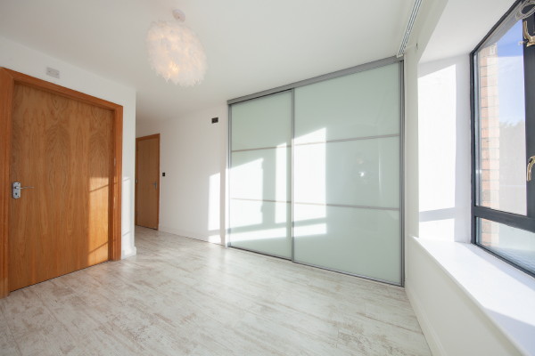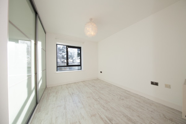 Double bedroom with wooden floor and fitted wardrobes. Double sockets and uPVC window.
