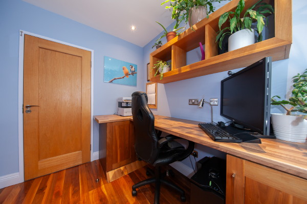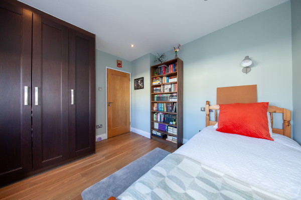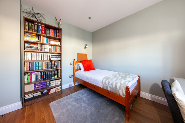 - Bedroom 3: Single bedroom with built in desk and walnut wooden floor.