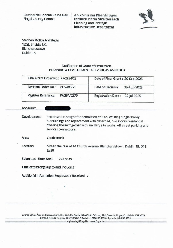 - Description: Site to the rear of 14 Church Avenue, Blanchardstown, Dublin 15, D15E830