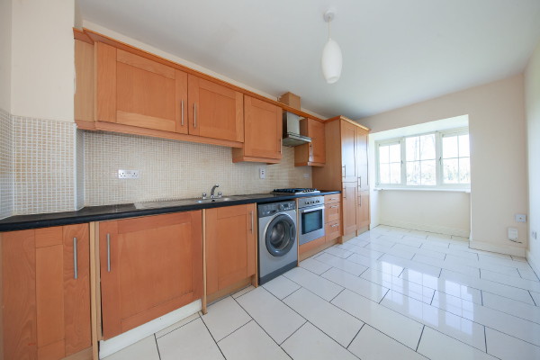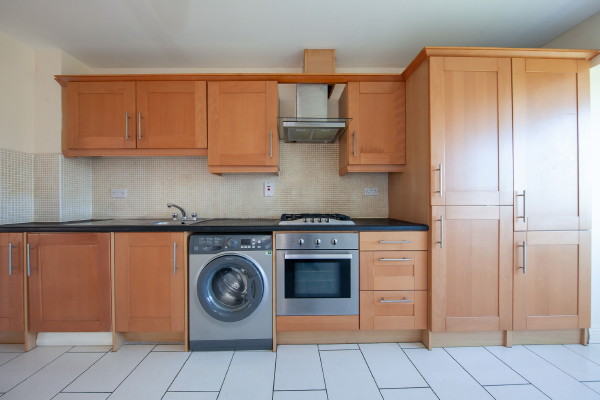 Fully fitted Kitchen with tiled floor, ample wall, and floor units.